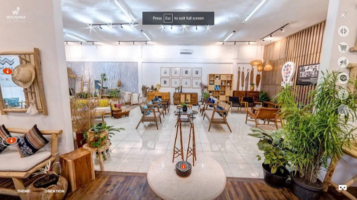 Selain di sektor wisata, VR360 juga merambah di dunia bisnis Indonesia. Perusahaan ritel maupun B2B menggunakan teknologi VR360 promosi dan meningkatkan keuntungan. Sebelum pandemi, orang semakin merangkul layanan e-commerce dan ingin melangkah lebih jauh lagi. Salah satu brand B2B furniture Indonesia yang menawarkan fitur VR360 adalah Wisanka. Dengan VR360, Calon Pembeli dari berbagai negara di penjuru dunia, bisa melihat-lihat produk furniture yang dipajang di showroom Wisanka. Hanya dengan melihat foto VR360 saja, mereka bisa berjalan mengelilingi showroom. Dengan ini calon buyer bisa hemat waktu, tenaga dan biaya tentunya. Mereka tidak perlu jauh-jauh ke Indonesia untuk melihat furniture. Selain Wisanka, perusahaan furniture yang memanfaatkan VR360 adalah IKEA. Dengan aplikasi khusus buatan IKEA, pengguna dapat menguji kecocokan furniture serta ruangan yang dimiliki.
